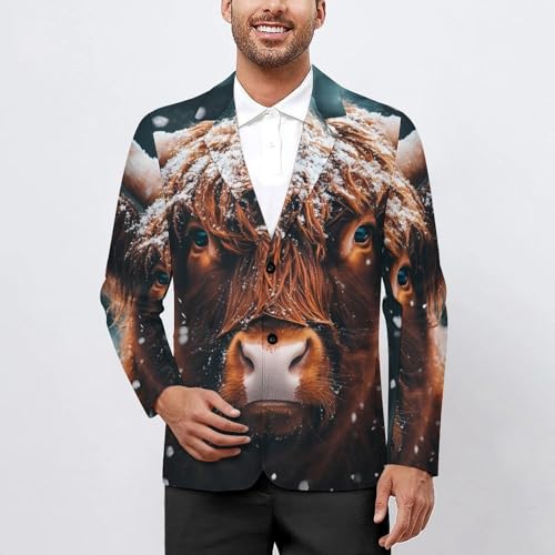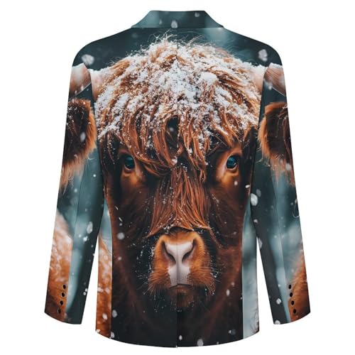 Highland Cow Snowy Day Mens Suit Jacket Lapel Blazers V Neck Button Business Coat Tuxedo for Wedding Party