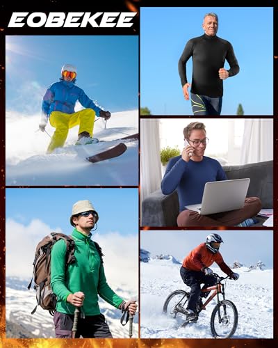 Men's Thermal Compression Shirts, Long Sleeve Fleece Lined Turtleneck Undershirt, Cold Weather Ski Base Layer Tops