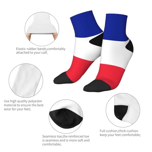 • Comfort Fit: The French flag print performance socks are crafted from high-quality polyester, offering a tender and snug feel. They strike the perfect balance between warmth and breathability, ensuring your feet stay fresh throughout the day.