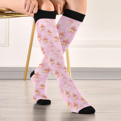 sizzling ! Gingerbread Man Pink Bows Compression Socks for Women Men, Circulation Long Knee High Socks Casual Stocking Athletic Tube Sport Sock