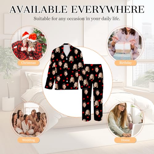 • Custom Pajamas Set For Women Men: Surprise your loved ones with customized pajamas with photos. Click the "Customize Now" button to upload the picture. The design team will cut out the face and customize it on the pajamas, making these funny face pajamas an unforgettable and one-of-a-kind gift.