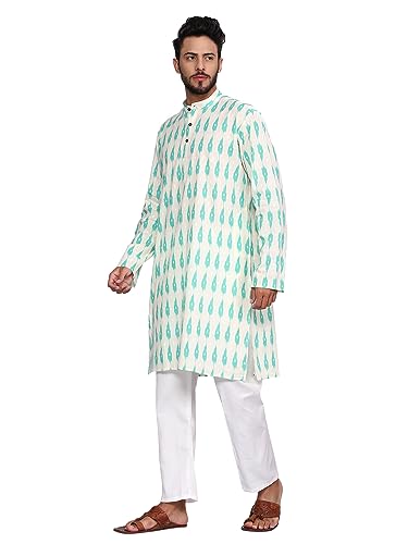 Fabric type: 100% CottonCare instructions: Hand Wash or Machine Wash (Cold Water), Do Not Bleach, Do Not Dry Clean, Air Dry or Tumble Dry Low, Iron Medium HeatOrigin: ImportedCrafted from cotton block Printed weavers’ cloth for a rich, authentic feel and superior quality. Features a classic mandarin collar and full-sleeve design for a sophisticated appeal. Versatile & Stylish – Ideal for birthdays, weddings, anniversaries, parties, festivals, yoga or any special occasion - Raksha Bandhan, Navratri, Dussehra, Diwali.Traditional Festive Block Printed Design – Eye-catching block prints on kurta create an elegant, timeless look.Sizing is designed for a regular relaxed fit. Kurta's actual garment measurement is 4 inches more i.e. Size Small(38) actual garment measurement will be (42).Size Medium(40) actual garment measurement will be (44). Size Large(42) actual garment measurement will be (46).Size X-Large(44) actual garment measurement will be (48). Size X-Large(46) actual garment measurement will be (50).Complete Kurta Pajama Set – Includes a classic men’s kurta with matching white pajama, perfect for traditional or casual wear.Premium Cotton Fabric Mens Clothing – Made of soft, breathable cotton for all-day comfort and durability. Perfect for everyday use. High quality materials and excellent craftsmanship ensure long-lasting durability.