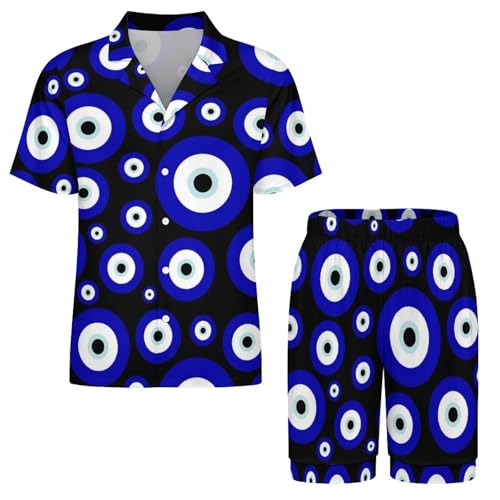 sizzling ! Blue Evil Eye Men's Short Sleeve velvety Summer Casual Pajama Set