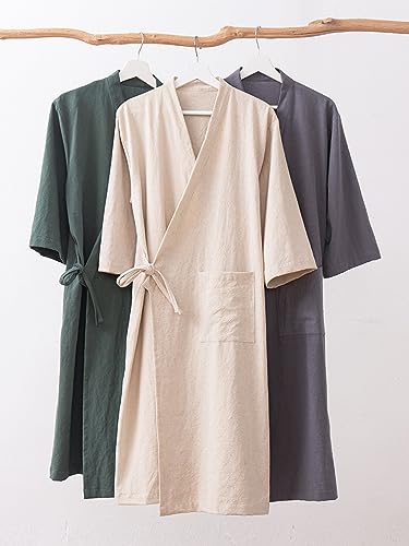 MOLUCI Men's Women's Cotton Linen Bathrobe Couples Japanese-Style Absorbent speedy-Drying Kimono Yukata Sauna Robe,Gray,L