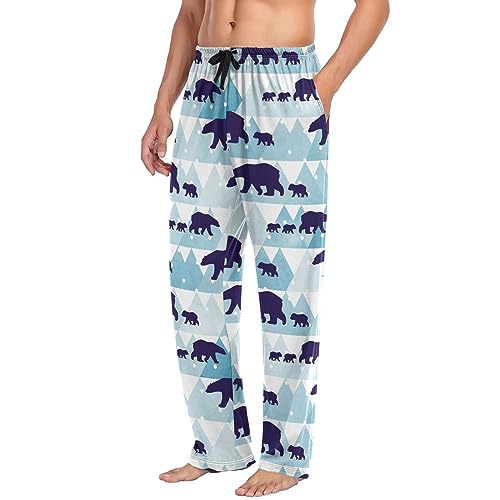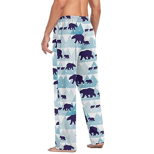 Winter Polar Bear Pajama Pants White Snowflakes Lounge Sleepwear PJs Men's Pajama Bottoms Casual Sleep Pants XL