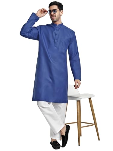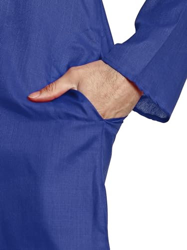 Men's Cotton Blend Casual Kurta Pajama Set (Blue, X-Large)