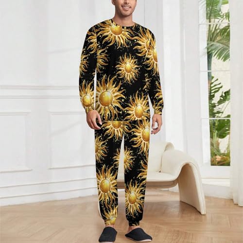 sizzling ! Magic Sun Print Men’s Pajama Set Long Sleeve Top And Pants Loungewear Sleepwear Pjs Nightwear
