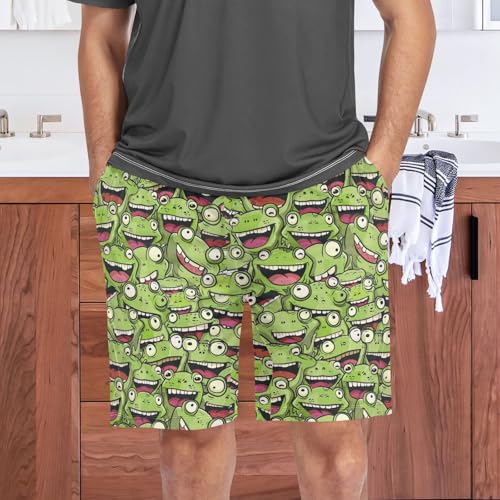 Frog Head Mens Pajama Shorts gentle Pants Lounge Sleepwear Bottoms with Drawstring & Pockets