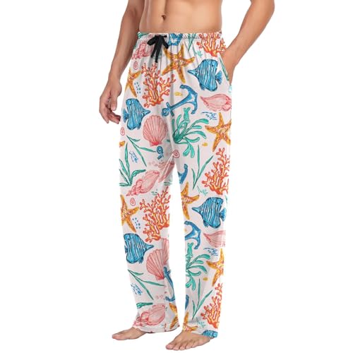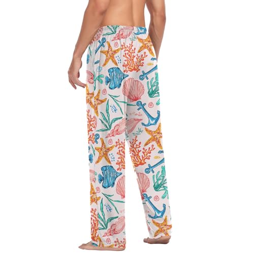sizzling ! Watercolor Seashell Corals Starfish Pajama Pants Fish Men's Pajama Bottoms Lounge Sleepwear PJs Sleep Pants L