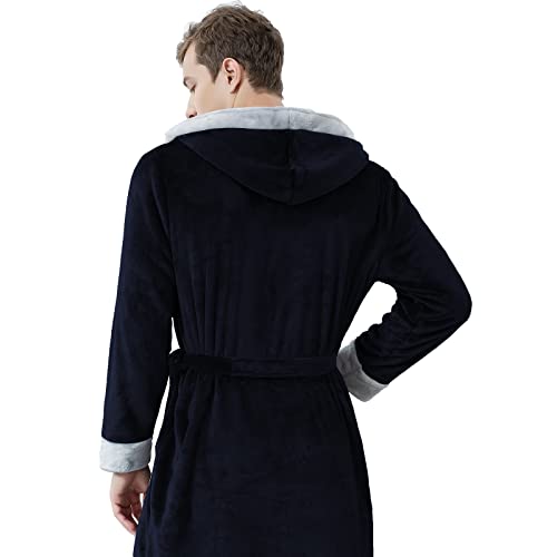 ZAKASA Hooded Robe for Men, Long Plush Male Bath Robes, smooth and cozy Full Length Bathrobes Winter Men's Sleepwear Housecoat
