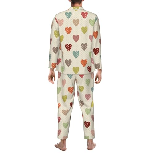 sizzling ! Heart Polka Dot Mens Pajama Sets Long Sleeve Loungewear Button Down Pjs Sleepwear