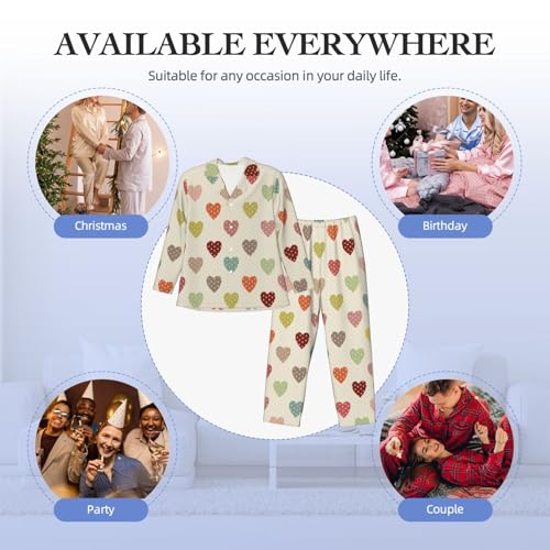 More information about Heart Polka Dot Mens Pajama Sets Long Sleeve Loungewear Button Down Pjs Sleepwear