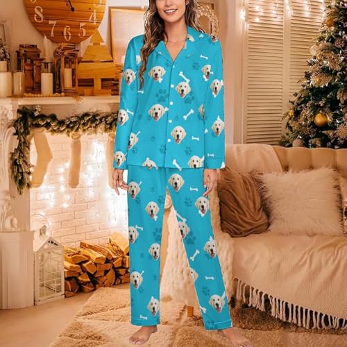 Personalized Face Pajamas Set for Women Men Custom Picture Pajamas Sets Long Sleeve Sleepwear Pajamas