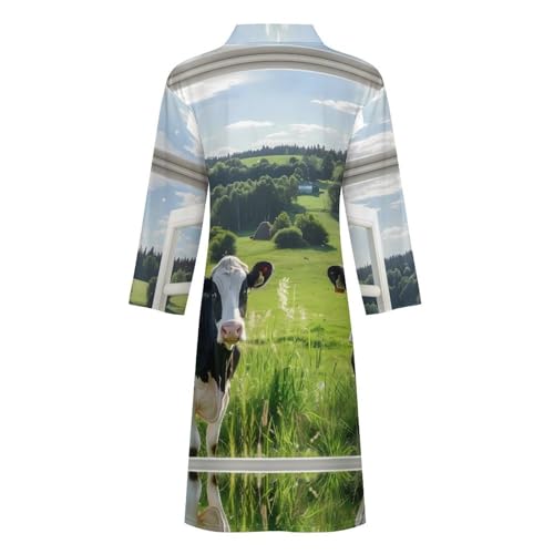 Farmhouse Cow From Window Funny Men's Robe gentle Lightweight Bathrobe Long-sleeve Spa Robes