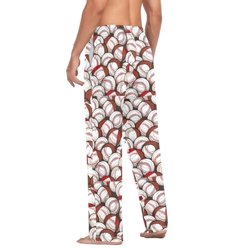 Men's Baseball Balls Pattern Pajama Pants with Pockets - Straight Fit Cotton Sleep Bottoms for Lounge & Nightwear#34