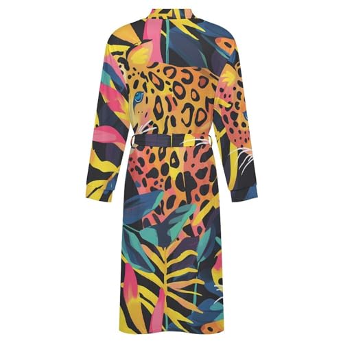 Cute Tropical Leopards gentle Robe Long Sleeve Bathrobes V Neck Sleepwear Spa Robes with Belt Men Woman