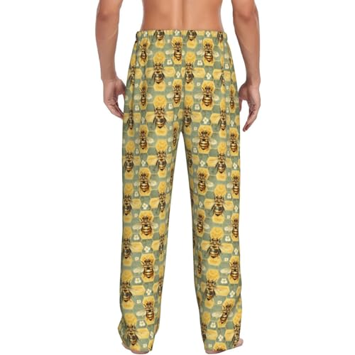 Mens Pajama Pants - Flower Bee Print gentle Sleep Lounge Pants For Men, Casual Pj Bottoms With Pockets