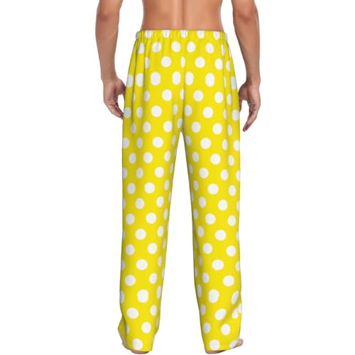 Mens Pajama Pants - Yellow Polka Dot Print (B) gentle Sleep Lounge Pants For Men, Casual Pj Bottoms With Pockets