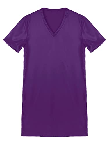 Why Choose easyforever Men's Satin Nightshirts V Neck Short Sleeve Pajamas Sides Split Tops Sleepwear Spa Bathrobe Shirt?