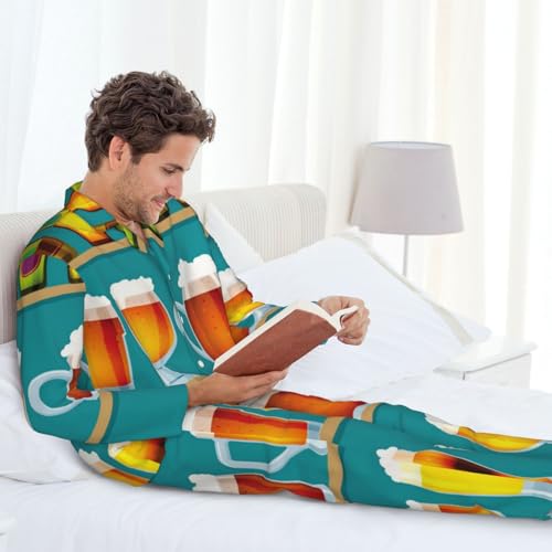 sizzling ! Beer And Beer Mug Bottle Mens Pajamas Set Button Down Sleepwear Set Long Sleeve Loungewear With Pockets