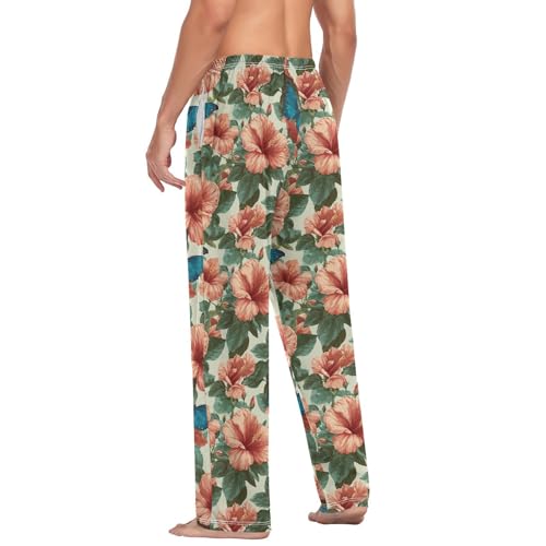 ALAZA Hibiscus Flowers Butterfly Men’s Pajama Pants gentle Long Sleep Pants Lounge Pajama Bottoms with Pockets