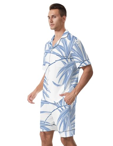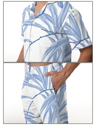 Men's Short Sleeve Pajama Set Colorful Sleepwear Button-Down Pjs Sets Two-Pieces Loungewear with Pockets