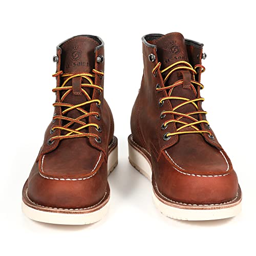 More information about Men’s Work Boots velvety Moc Toe Handmade enduring Ankle Fashion Casual 6 Inch Wedge Sole Industrial Construction Shoes Brown/Black