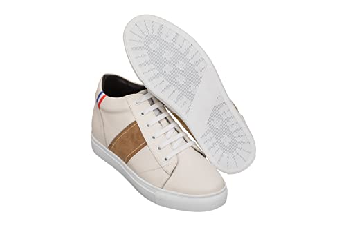 CALTO Men's Invisible Height Increasing Elevator Shoes - Beige White Leather Lace-up Sneakers - 2.8 Inches Taller - K53101 - Size 7 D(M) US