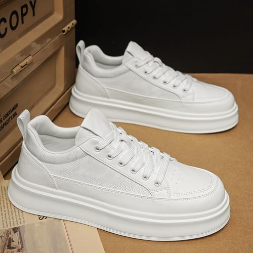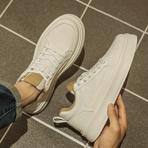 Men's Fashion Breathable Mesh Leather Lace Up Sneakers Casual Retro Non Slip Round Toe Platform Driving Walking Sneakers