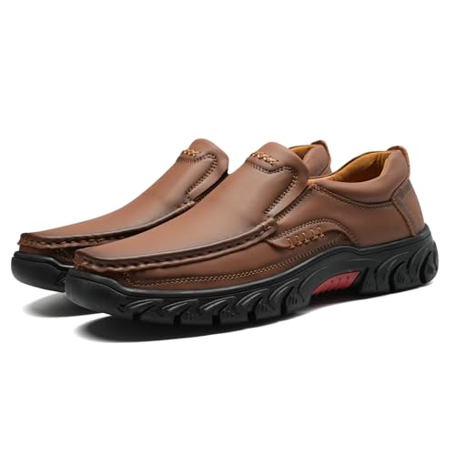 Mens Slip On Casual Loafers timeless Outdoor Leather Walking Hiking Dress Shoes cozy for Work Office Shoes