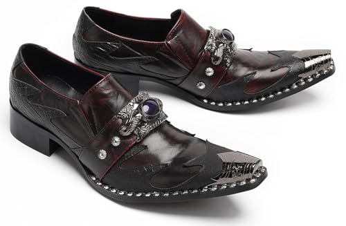 Santimon Men’s Slip On Leather Loafers with Metal Toe & Dragon Jewel Buckle – Vintage Punk Dress Casual Gothic Flame Shoes for Wedding, Party, Stage