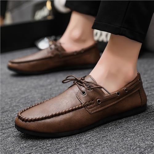 Resistant Lightweight Flat Heel Fashion Slip On Men's PU Leather Loafers Moccasins Shoes Lace Up