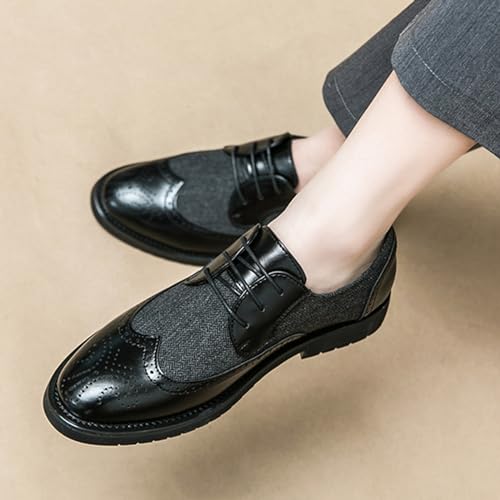 Men's Patchwork Two Tone Brogue Oxfords Shoes Fashion Wingtip Round-Toe Lace Up Low Top Leather Dress Shoes enduring Hand Stitched Business Formal Derby Shoes