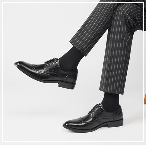 Men's Leather Wingtip Chunky Heel Oxford Shoes Business Pointed Brogue Carved Lace-Up Casual Work Dress Shoes Suitable for Work Wedding Driving