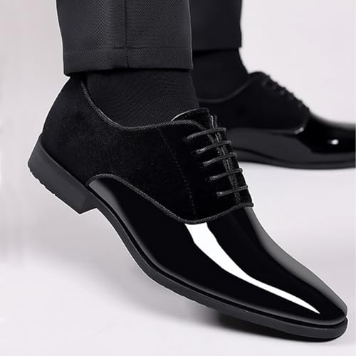 Men's Patent Leather Suede Dress Oxfords Casual Non-Slip Hi-Gloss Style Oxford Shoes enduring Lace-Up Business Wedding Tuxedo Shoes