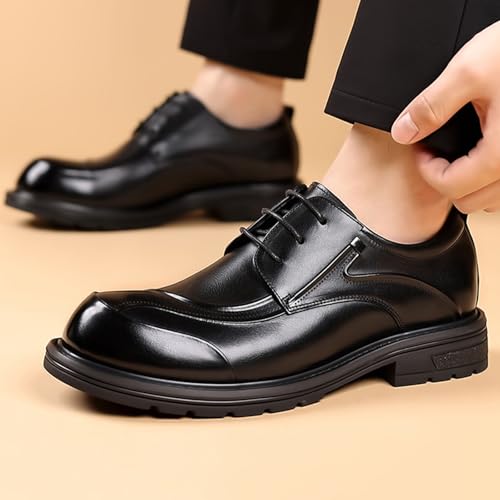 • 【Fashion Style】This pair of men's genuine leather hand stitched oxford shoes is solid color british style,the heel height is 1.37 inches, making you look taller.Every detail is carefully carved to show unparalleled exquisiteness. The iconic design concept combines new-age trend elements, allowing you to stand out in business occasions and become the focus of everyone's attention.