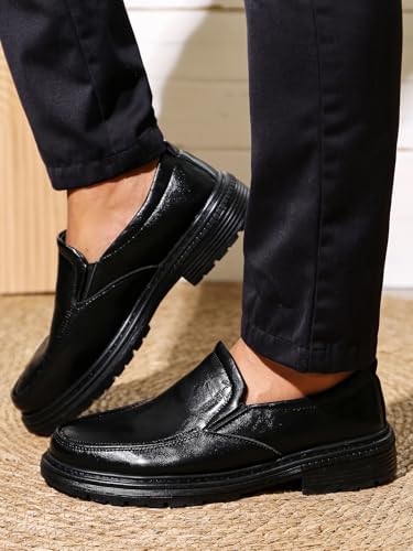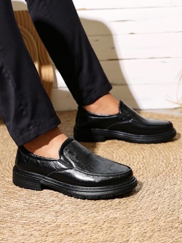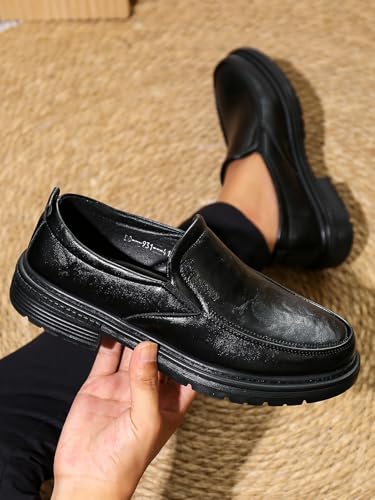 • Polished & enduring Aesthetic These men's slip-on loafers feature a smooth, shiny finish and sophisticated design.The sleek black finish and clean lines make them a superb complement to both formal business attire and smart - casual outfits. Whether you're heading to the office, a wedding, or a weekend brunch, mens casual loafers add an air of refined elegance to your look.