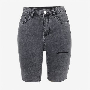 Anna-Kaci Women's High Waist Distressed Denim Bermuda Shorts with