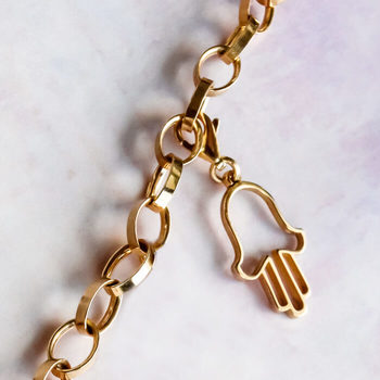 Zawieszka ręka Fatimy została stworzona specjalnie do naszej bransoletki na charmsy. Dzięki odpinanym zawieszkom możesz sama stworzyć unikatową biżuterię, mieszać ze sobą charmsy na różne sposoby, a także wymieniać je w zależności od Twoich preferencji. To modna biżuteria, która wyrazi Twoje pasje, a także będzie wspaniałą pamiątką. Znajdziesz u nas zawieszki wykonane ręcznie i polerowane na wysoki połysk. Dokładamy dużo staranności, by stworzyć piękną i jednocześnie trwałą ozdobę, którą można zakładać do każdej stylizacji. Bransoletka z charmsami będzie pasowała zarówno na co dzień, jak i na specjalne okazje.