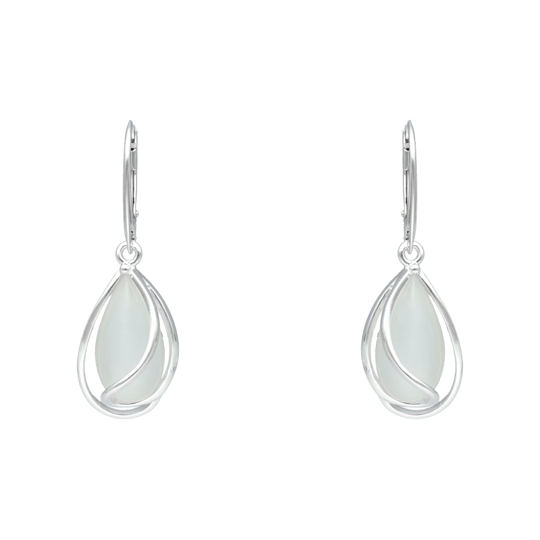 Kolczyki w kształcie łezki wykonane z najwyższej próby srebra, ozdobione białym uleksytem. Niezwykle elegancka i wyrazista biżuteria podkreśli każdą stylizację i nada jej charakteru. Kolczyki posiadają zapięcie typu angielskie. Uleksyt jest bardzo rzadkim kamieniem, uznawanym za talizman, który ma pomagać w podejmowaniu ważnych decyzji, oraz pobudzać naszą kreatywność i odwagę.